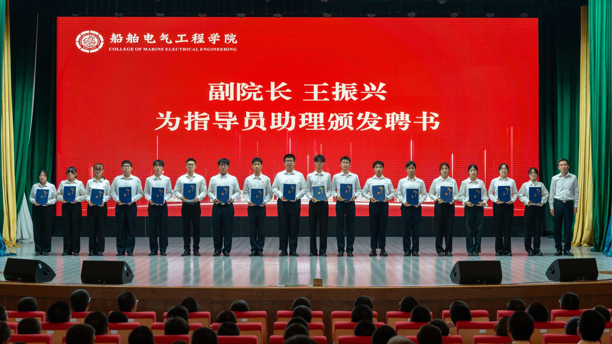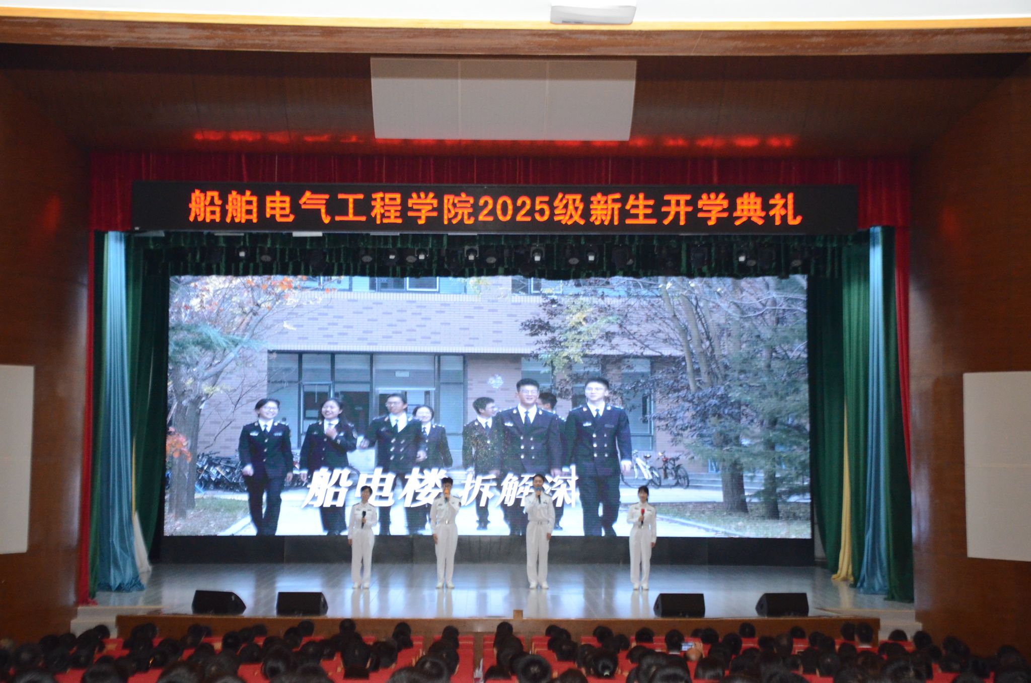 全体师生欢迎2025级新同学。彭周华以“同舟悟道,慧赢深蓝”的院训为主题,对同学们提出三点期望:一是同舟共济,在协同中凝聚力量,在课堂中主动分享见解、在实验里高效配合、在项目中携手攻坚,让“同舟共济”成为探索知识海洋的实践方式;二是悟道致远,在探索中突破认知,不断拓展认知边界,培养敏锐的观察能力和系统解决问题的能力;三是慧赢深蓝,在奋进中开创未来,担当时代使命,主动投身科研创新,以学识与担当,成为民族复兴伟业的中流砥柱,用青春为海洋强国建设注入船电智慧。最后,他希望同学们牢记“同舟悟道,慧赢深蓝”的院训,在团结协作中探索科学真理,以智慧赢得深蓝,为海洋强国、交通强国建设贡献自己的力量。