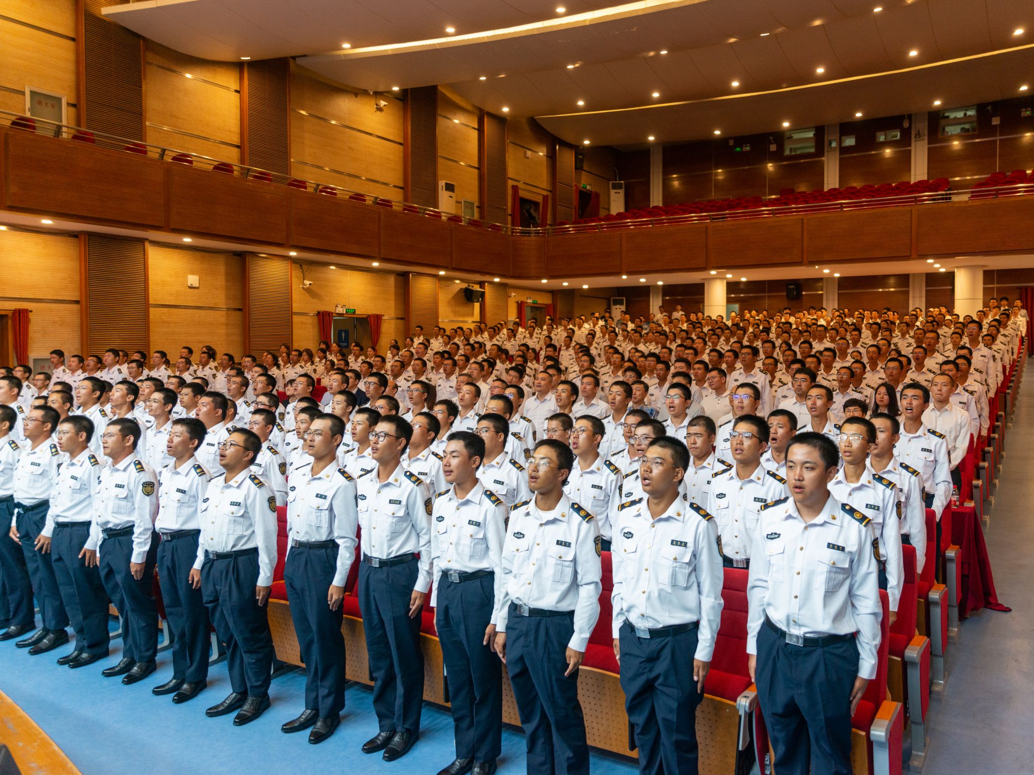 全场师生观看视频《追梦》,视频记录了2025级新生从烈日下的意志锤炼到汇报表演的荣光加冕,从星夜拉练的并肩前行到整装待发的深蓝誓言。视频生动展现了新生们通过军训磨砺出的钢铁意志与磅礴力量,激励全体船电新青年以此为始,在人生新征程中勇敢追梦。