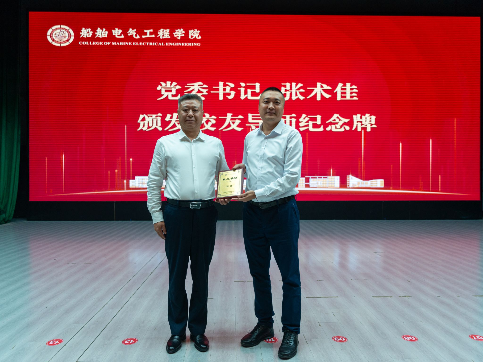 党委书记张术佳向孙锋校友颁发校友导师纪念牌。