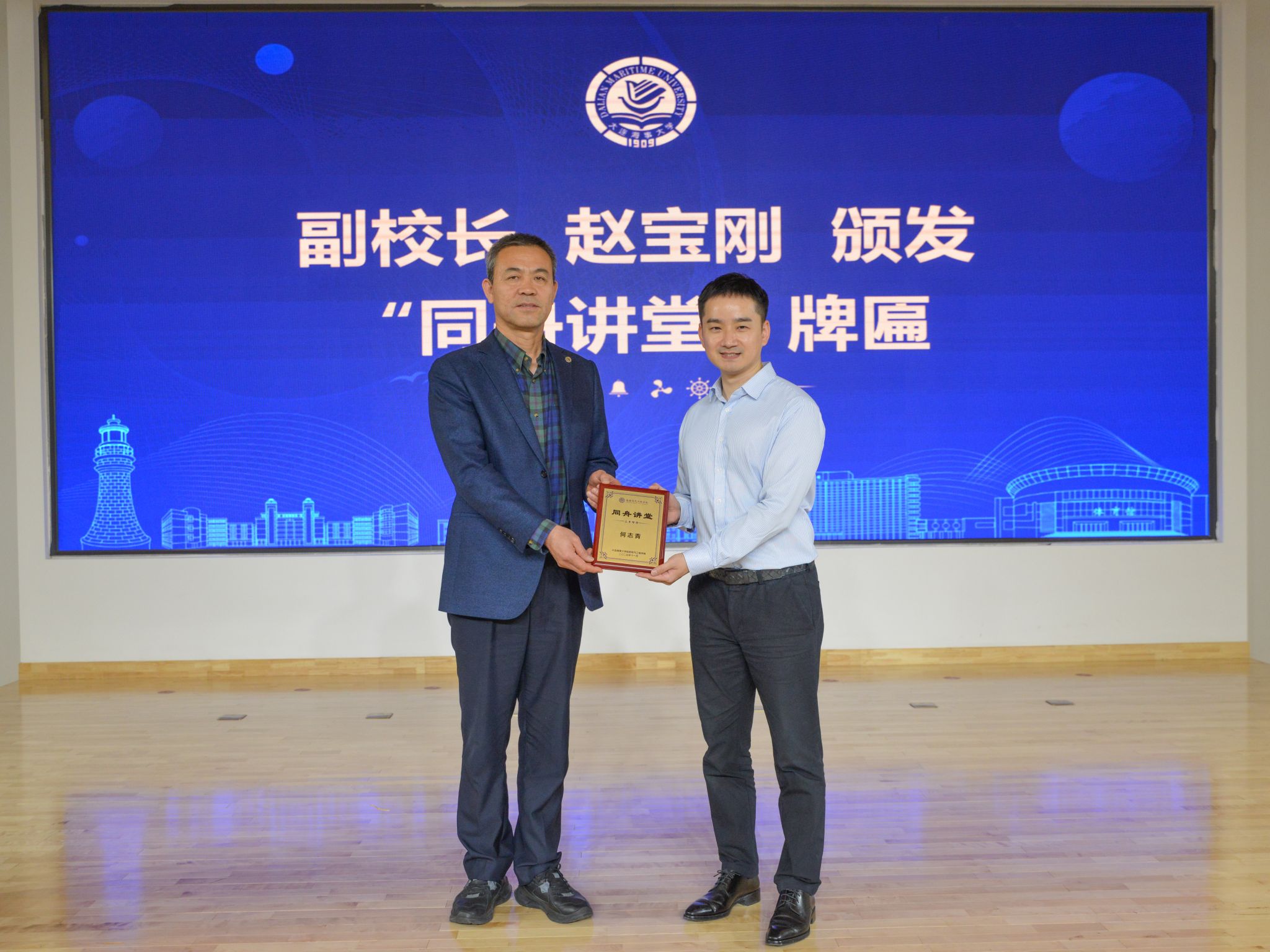 “同舟讲堂”纪念牌匾。两块牌匾不仅承载着母校与校友之间的深厚情谊,也象征着知识与精神的薪火相传。